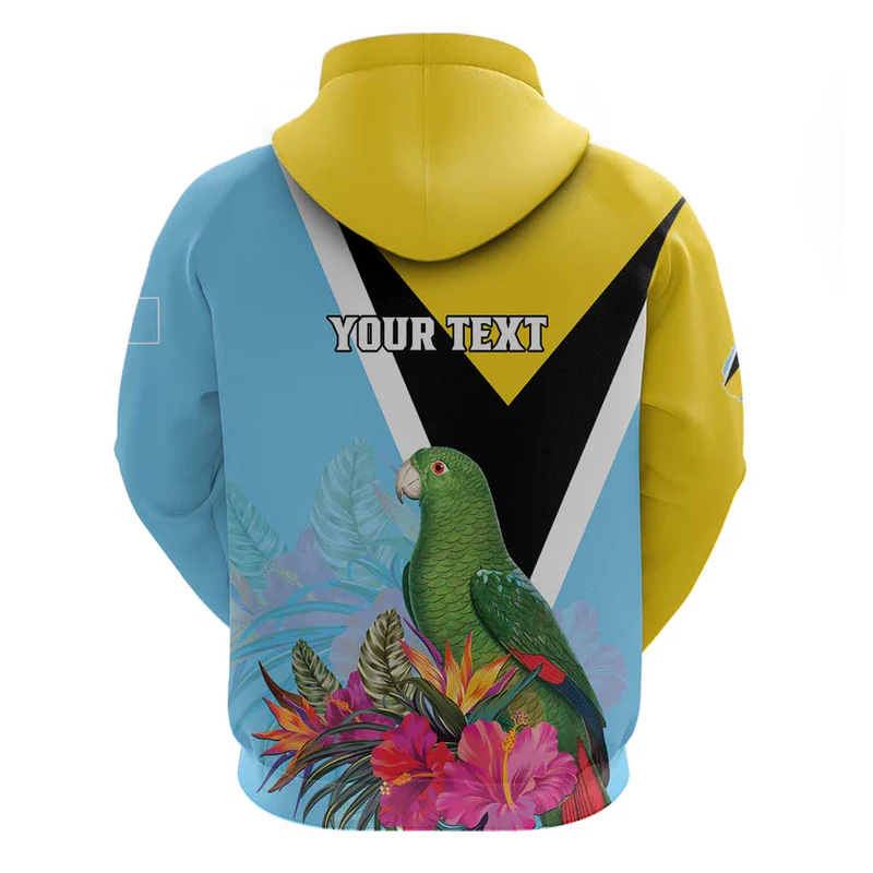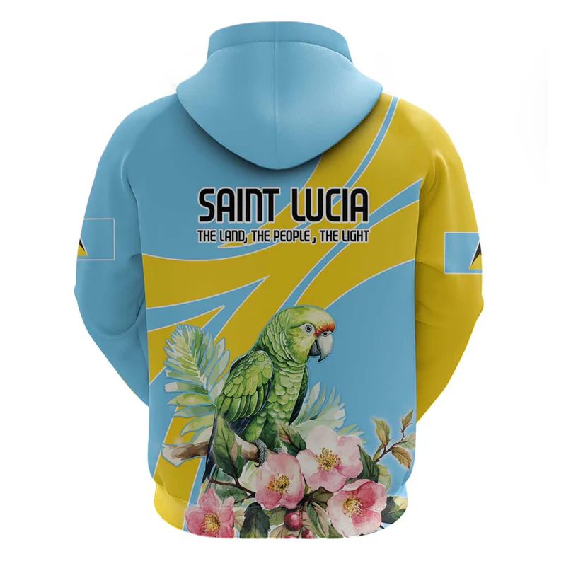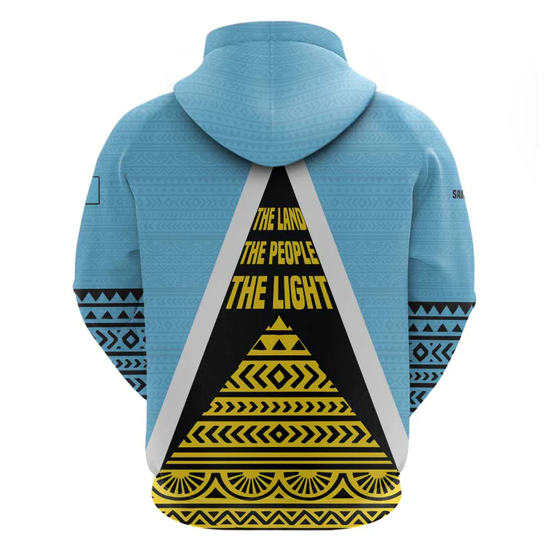 Saint Lucia Tribal Triangle Design Hoodie with Flag Colors and The Land The People The Light Quote