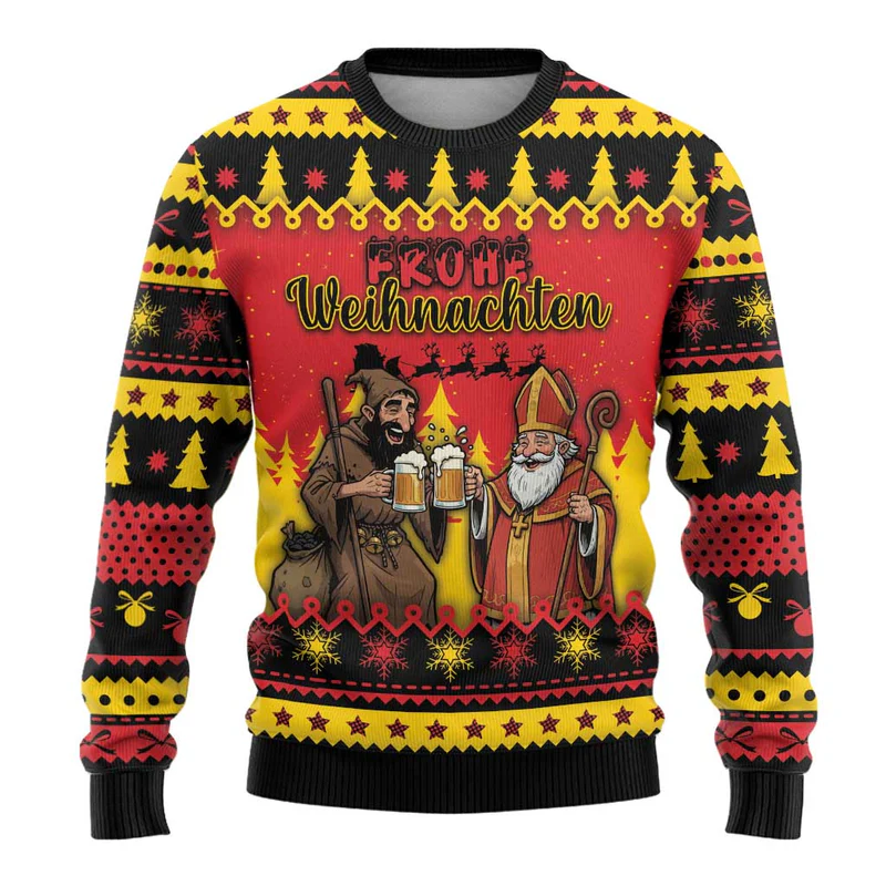 Germany Christmas Ugly Christmas Sweater Saint Nicholas And Knecht Ruprecht Drink Beer
