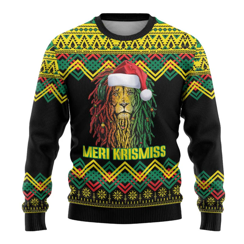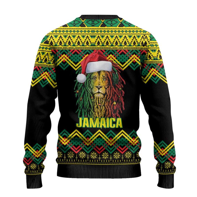 Jamaica Reggae Lion Christmas Ugly Christmas Sweater Kente Pattern Meri Krismiss