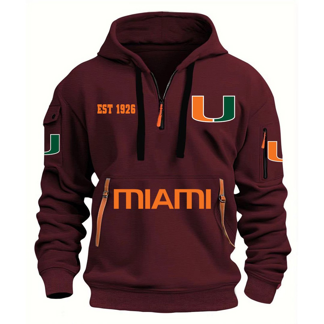 Love the quarter-zip design — the collar stands up nicely and gives a bit of edge compared to a regular hoodie. The fabric is soft and the Miami logo looks clean.