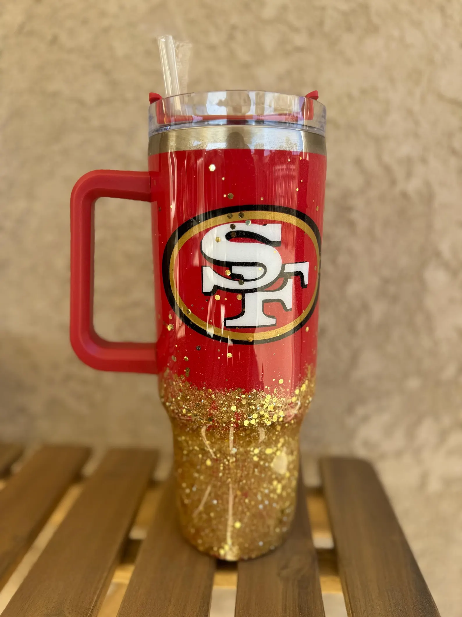 Super cute custom NFL tumbler, fits perfectly in my car cup holder.