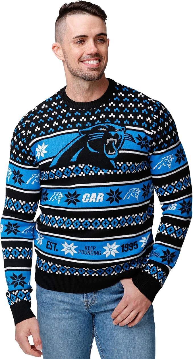 • This item: NFL Team CAROLINA Ugly Christmas Sweater - Knitted Sweater Original price was: $49.00.Current price is: $39.95.