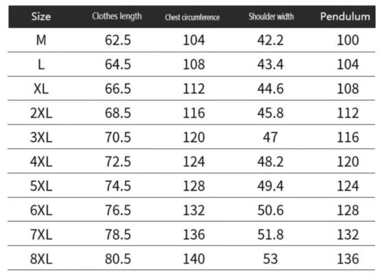 - Size: Available in a wide range of sizes (S to 6XL), suitable for both men and women of different body types.